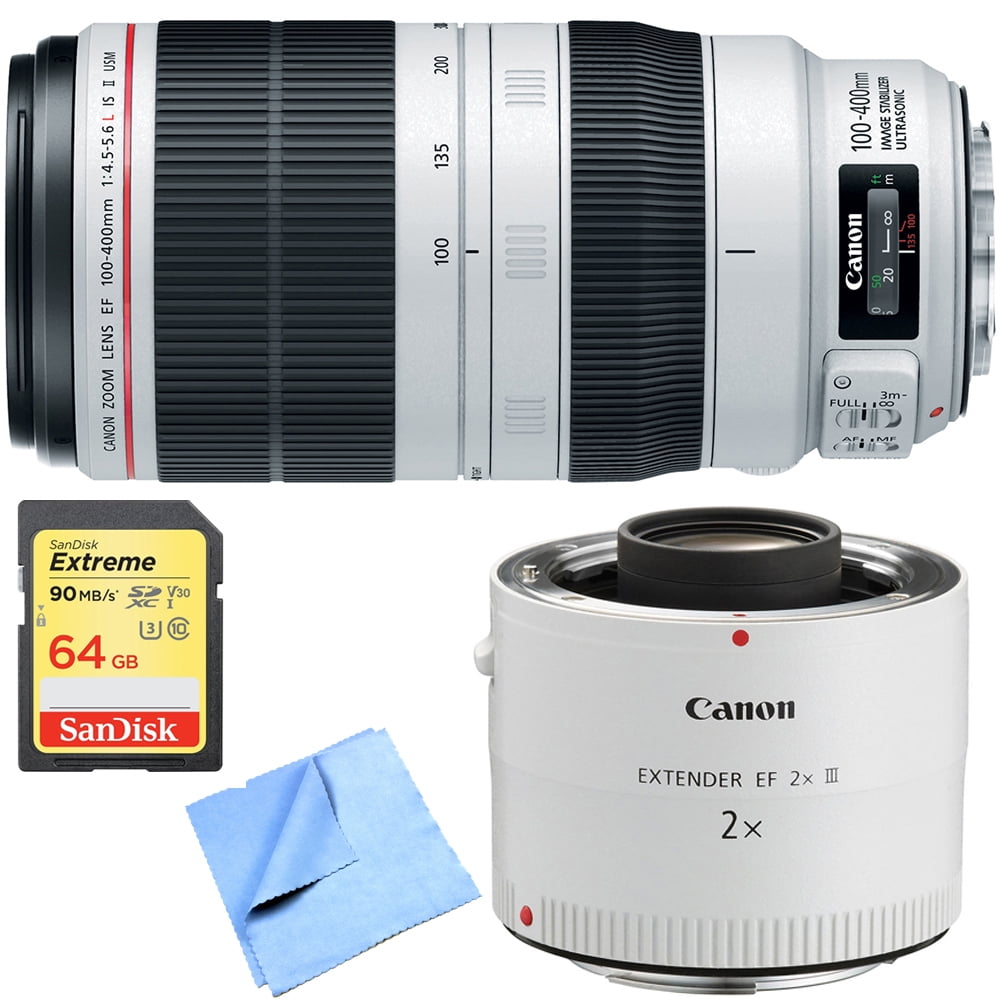 Canon Ef 100 400mm F 4 5 5 6l Is Ii Usm Lens 9524b002 W Extender 64gb Card Bundle Includes Lens Ef 2 0x Iii Telephoto Extender 64gb Extreme Sd Memory Card And Beach Camera Microfiber Cloth