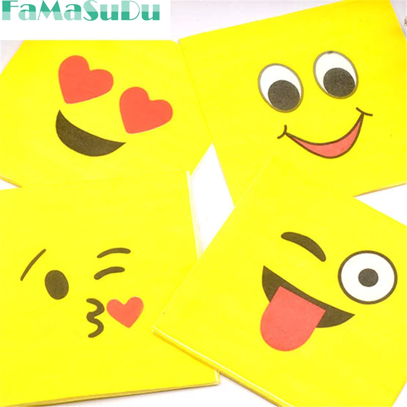 60pcs \ Lot divertido tema de dibujos animados emoji Feliz cumpleaños fiesta niños favores servilletas de papel decoración tejidos evento suministros|event supplies|baby showerbirthday party kids - AliExpress